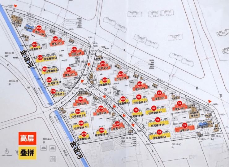 08-03地块:容积率2.2,拟建3栋23-26F高层住所、4栋5F多层住所以及若干社区配套用房;