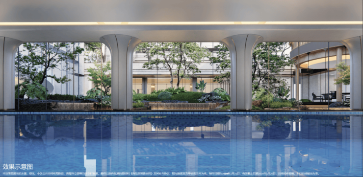 项目标配下沉式院子会所和恒温泳池,满意业主们的会客、健身、文娱需求,一起使用修建内部的架空区域,以全龄社区为起点,打造包容多元日子的社区中心。
