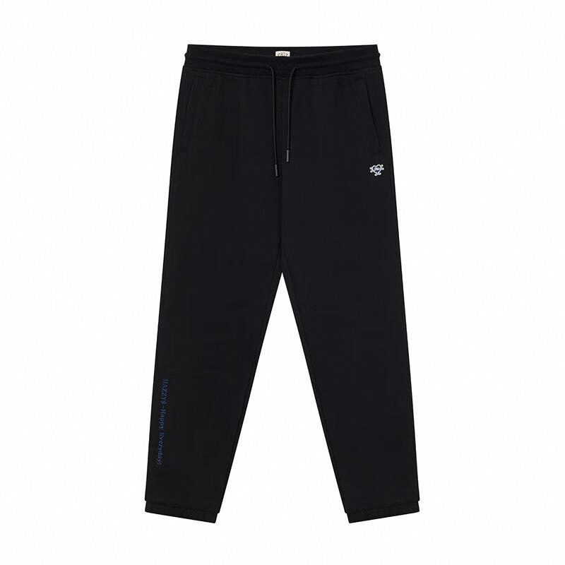 黑色作为经典百搭色,在Hazzys的设计语言中常被赋予沉稳与克制的意味。这款裤子以纯黑为主调,搭配侧面蓝色文字点缀,形成低调中的亮点,展现出品牌对色彩平衡的精准把控和对细节的关注。